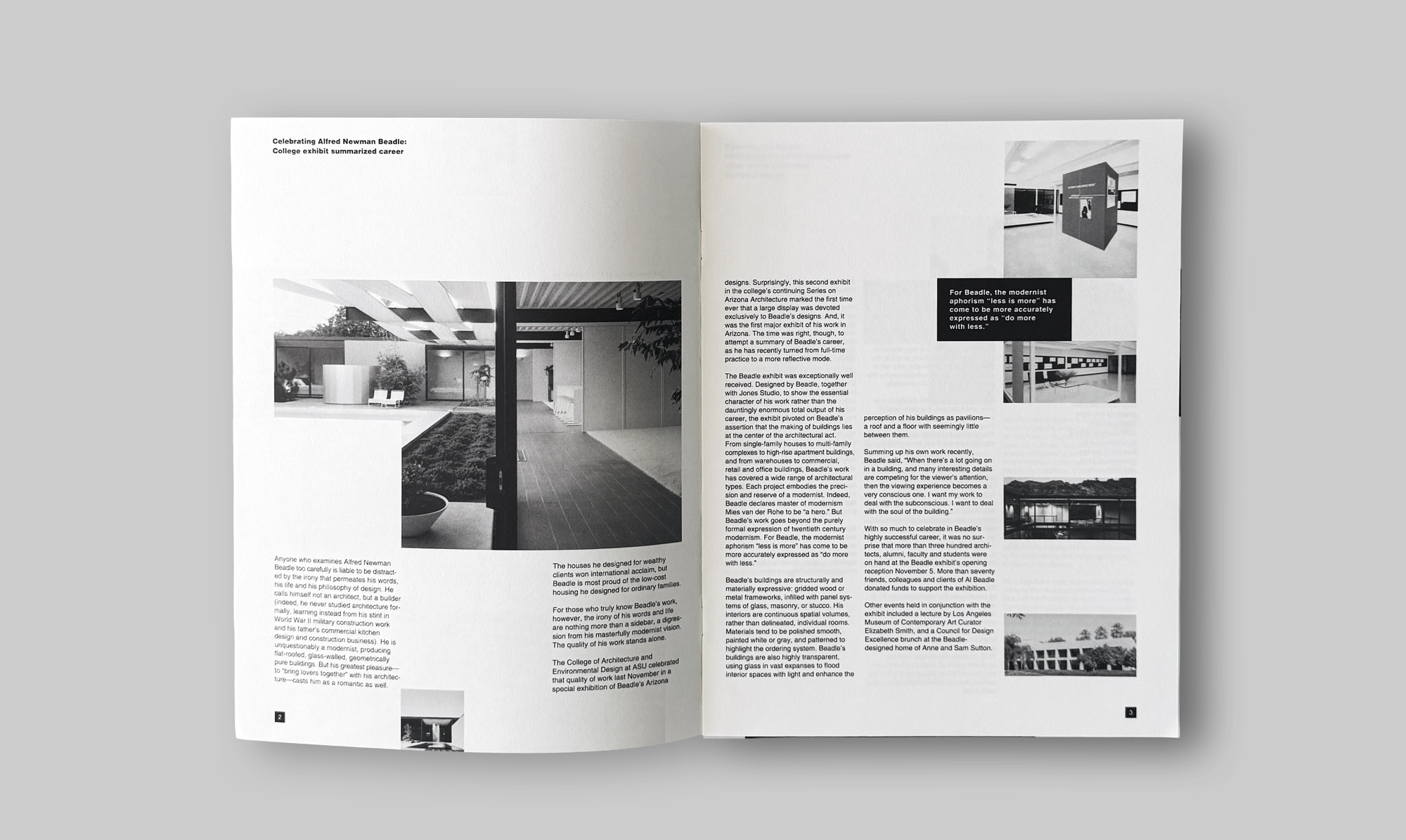 Text interacted with grid-based compositions, creating tension and rhythm across spreads. Blocks of space were treated as architectural volumes, allowing content to breathe while reinforcing structure.